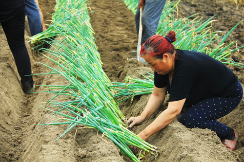 | 原平:收割小麥栽大蔥 |
