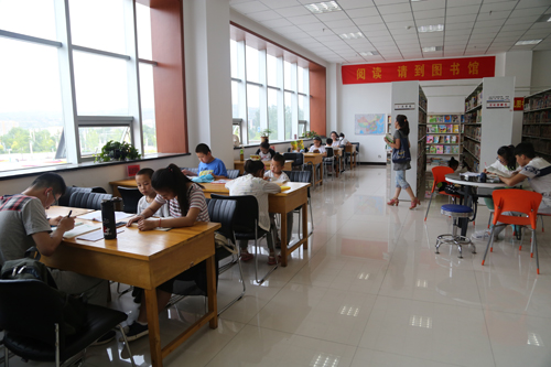 7月22日,一群孩子在靜樂(lè)縣圖書(shū)館閱讀少兒書(shū)籍。進(jìn)入暑假,寬敞明亮的靜樂(lè)縣圖書(shū)館每天都有近百名讀者免費(fèi)閱覽各種書(shū)籍,今年最大特點(diǎn)是青少年學(xué)生比較多。近年來(lái),靜樂(lè)縣為給讀者提供舒適的閱讀環(huán)境,先后安裝了空調(diào),配備了飲水機(jī)等。(閆曉梅 攝)