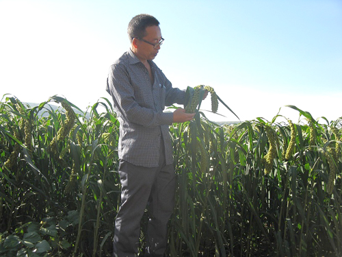 8月16日,山西省偏關(guān)縣氣象局農(nóng)業(yè)氣象服務(wù)人員,深入本縣老營鎮(zhèn)老營村,調(diào)研“張雜谷”生長的氣象條件,指導(dǎo)農(nóng)民防御自然災(zāi)害。今年,受厄爾尼諾影響,偏關(guān)縣降水正常偏多,但極端天氣頻發(fā),僅暴雨就下了三次,冰雹下了三到四次,大風(fēng)出現(xiàn)了一次??上驳氖墙邓唷皬堧s谷”長勢喜人,谷穗長的大而粗。農(nóng)民最擔(dān)心的是大風(fēng)、冰雹和霜凍,三種災(zāi)害都會造成“張雜谷”減產(chǎn),甚至顆粒無收。農(nóng)業(yè)氣象人員向農(nóng)民講解了防御三種氣象災(zāi)害的方法,并提醒農(nóng)民朋友每天關(guān)注偏關(guān)縣電視天氣預(yù)報,注意接收天氣預(yù)警短信,防患于未然,奪取今年農(nóng)業(yè)豐收。(彭愛國)