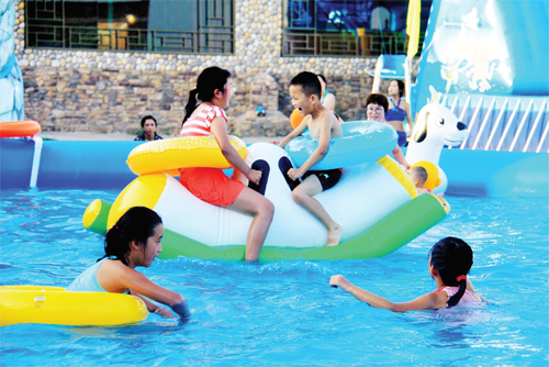 8月21日,原平市天牙山景區(qū)“水上動漫世界”樂園里熱鬧非凡,暑期的孩子們在家長陪同下,快樂玩耍。假期里,孩子們走出家門,親近自然,參與各種體育活動,放松了心情,增強了體質(zhì)。(吉建平攝)