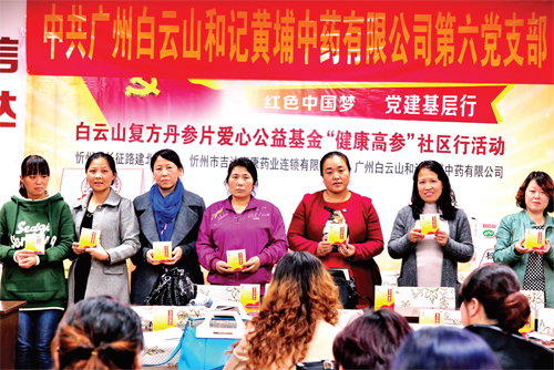 本報(bào)訊 10月21日,白云山和黃中藥公司復(fù)方丹參片愛(ài)心公益基金志愿者服務(wù)隊(duì)與忻州市吉達(dá)惠康連鎖藥店聯(lián)合主辦了“紅色中國(guó)夢(mèng)、黨建基層行”愛(ài)心公益活動(dòng),向社區(qū)居民贈(zèng)送了健康體檢卡及健康藥物禮包,并開(kāi)展了一系列的黨建文化交流活動(dòng)。