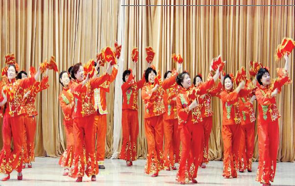 近日,原平市舉行群眾新年文藝聯(lián)歡活動(dòng),來(lái)自社區(qū)、鄉(xiāng)村、小區(qū)的25支群眾文藝社團(tuán)通過大合唱、廣場(chǎng)舞、雙人舞、扇子舞、男女聲二重唱、戲曲、旗袍秀、秧歌舞、拉丁舞、水兵舞等多種多樣的表演形式,齊頌祖國(guó)好,齊夸祖國(guó)興旺發(fā)達(dá)的喜人局面和人民幸福安康的好光景。圖為北城京原社區(qū)舞蹈隊(duì)正在表演廣場(chǎng)舞《紅紅火火大中華》(藺紅 褚震 攝)