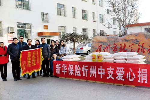 本報訊1月19日,新華保險忻州中支一行10余人在總經理胡杰的帶領下,來到忻州市社會福利院開展愛心捐助活動。他們從滿滿的貨車上卸下米、面、油等物資,并在福利院院長的帶領下看望了兒童護理中心的孩子們。