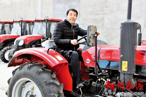 2月25日,原平市上封村村民孟寶生在該市農(nóng)機(jī)公司購買了一臺(tái)東方紅牌拖拉機(jī),享受政府農(nóng)機(jī)補(bǔ)貼,高高興興開回家。原平市農(nóng)機(jī)公司發(fā)揮農(nóng)機(jī)供應(yīng)主渠道作用,積極組織農(nóng)機(jī)貨源,大中小不同型號(hào)、平地山坡地耕播旋功能等農(nóng)機(jī)具品種齊全,滿足了農(nóng)民春耕備耕生產(chǎn)需求。(吉建平 攝)