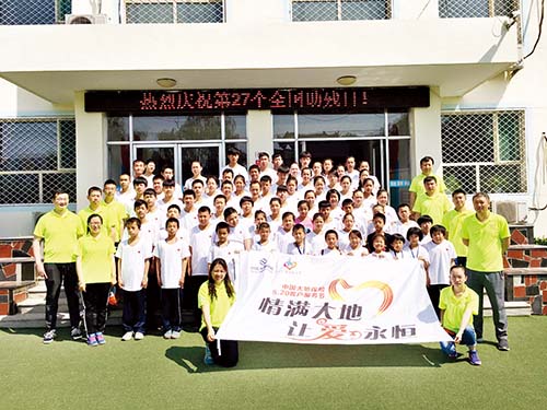 在全國助殘日前夕,5月20日,大地財產(chǎn)股份有限公司忻州分公司的愛心志愿者們來到忻州市特殊教育學校為學生們捐贈了籃球、羽毛球拍、書本等價值3千余元的文體用品。圖為志愿者群體與學生合影。郭浩東 攝影報道