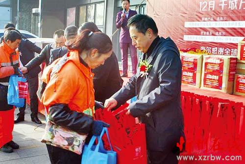本報訊12月9日,我市環(huán)衛(wèi)工人領(lǐng)到海爾專賣店贈送的冬季防寒用品。隨著較強冷空氣帶來的降溫,忻州城區(qū)氣溫急轉(zhuǎn)直下。當(dāng)天上午,忻州海爾專賣店為現(xiàn)場50余名環(huán)衛(wèi)工人代表發(fā)放了“ 防寒禮包”,給冬日里工作在一線的“馬路天使”們送來了一份溫暖。同時,還將一個大蛋糕分送給環(huán)衛(wèi)工人,為他們送上了特別的關(guān)懷。