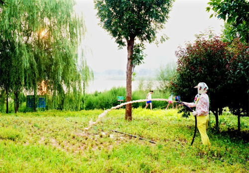 8月5日,河曲縣綠化工正在利用水泵汲取黃河水澆灌綠植。連日來(lái),持續(xù)的高溫晴熱天氣,導(dǎo)致綠化植物普遍出現(xiàn)旱情。為此,該縣動(dòng)用水車、抽水泵等設(shè)備,多方調(diào)水,加大澆灌力度,推進(jìn)抗旱保綠。(賈金理 攝)