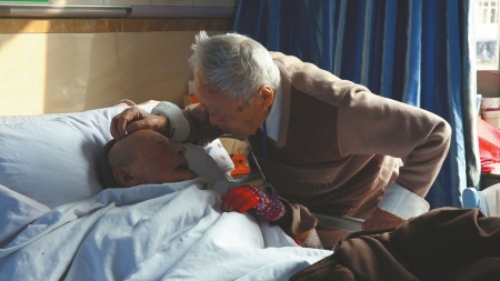 “我20歲了!”鐘婆婆的回答讓護工有些哭笑不得,也許她還記得,20歲是她最好的年紀,那一年她嫁給了他。時光涌動,穿過她的記憶,或許她的年華定格在了20歲,只有身邊的他,記得他們已經(jīng)相伴了70年。(記者 田之路 吳楓)
