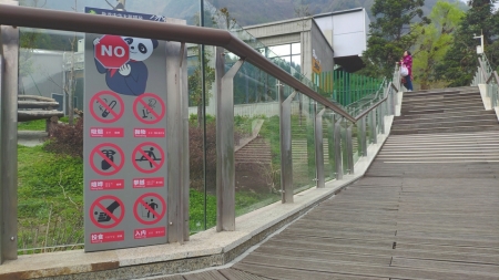 在現(xiàn)場走訪時,記者看到大熊貓幼兒園圍欄周圍確實設(shè)置了禁止攀爬、投食等行為等警告標志,但全程未見有安保人員巡邏。