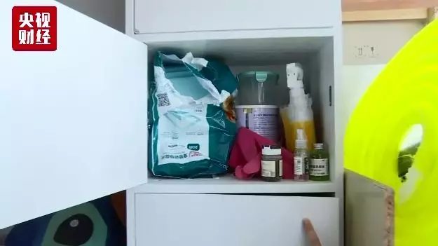 從玩具,到罐頭,再到保健品,以及狗生病的藥,甚至狗的牽引繩都有近20根。細(xì)算之下,這一整柜寵物用品價格逼近4000元。