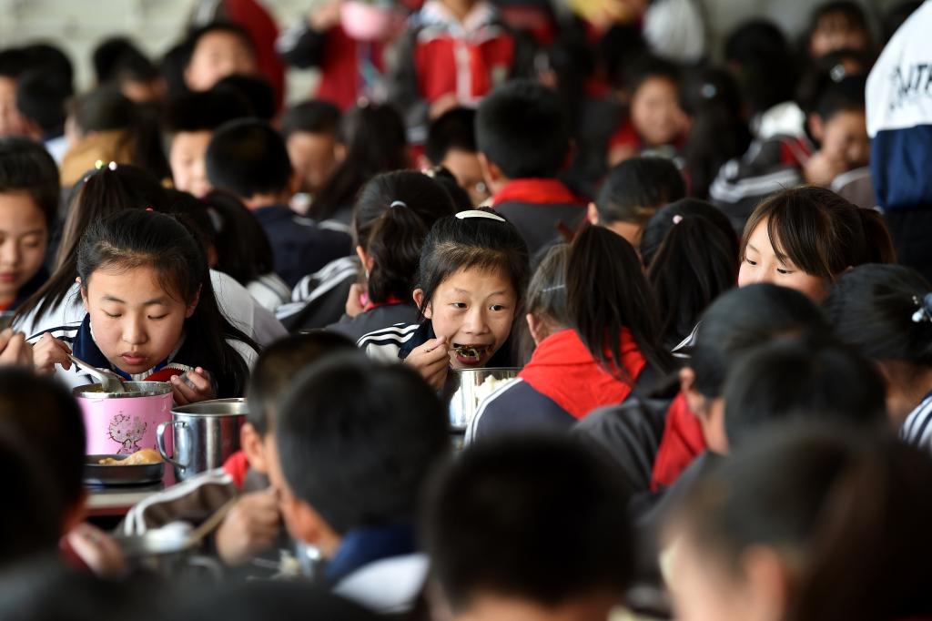 ↑這是學(xué)生們?cè)谑程贸晕绮停?月16日攝)。新華社記者詹彥攝