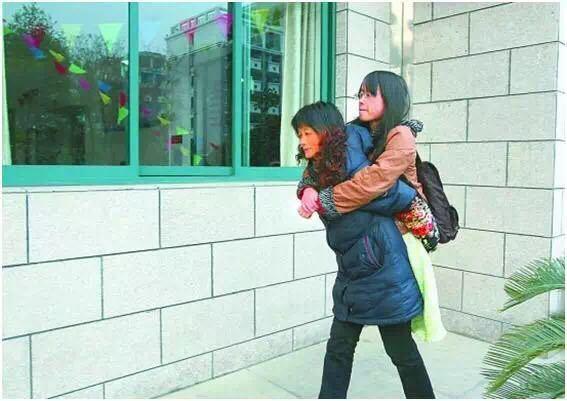 6歲那年,一場(chǎng)車禍奪走了葉沈俏的雙腿。依靠著母親的背和輪椅,她從鄉(xiāng)村小學(xué)一路考進(jìn)浙江大學(xué)。村里有人私下議論:“這孩子這輩子完了!”葉沈俏的父母卻不這么認(rèn)為?!拔覌寢層幸粋€(gè)非常明確的信念:我的女兒一定要受教育,一定要讀書?!痹谀赣H的陪護(hù)下,葉沈俏從村里的小學(xué)讀起,開始了和同齡人一樣的學(xué)習(xí)節(jié)奏。圖為葉沈俏的媽媽背著她去上課。