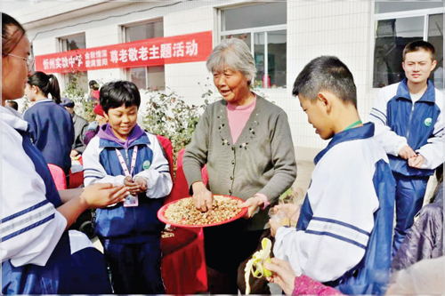 本報(bào)訊 為弘揚(yáng)中華優(yōu)秀傳統(tǒng)文化,倡導(dǎo)尊老、敬老、愛老、助老的傳統(tǒng)美德,引導(dǎo)師生樹立“尊老、敬老、愛老、助老”的良好風(fēng)尚,近期以來,忻州實(shí)驗(yàn)中學(xué)校開展了“金秋情深愛滿重陽”尊老敬老系列主題活動。