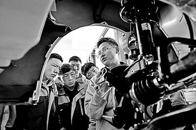 9月8日,在青海省果洛藏族自治州職業(yè)技術(shù)學(xué)校,汽車(chē)運(yùn)用與維修專(zhuān)業(yè)學(xué)生在實(shí)訓(xùn)課程上學(xué)習(xí)。 新華社發(fā)