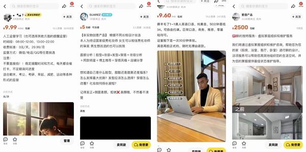大賽期間,學(xué)生們掛出了監(jiān)督學(xué)習(xí)、口語練習(xí)、妝造設(shè)計等豐富的特色商品。網(wǎng)絡(luò)截圖