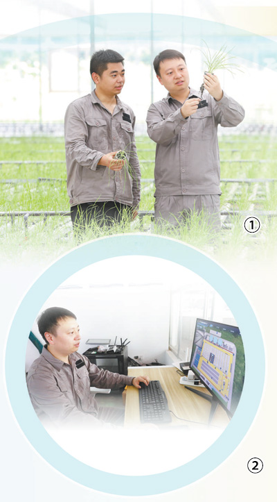 圖①:李脈(右)在觀察韭菜的生長情況。