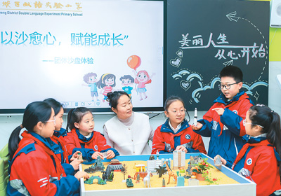 近日,多地中小學(xué)開學(xué),迎來春季新學(xué)期。圖為山東省棗莊市薛城區(qū)雙語實驗小學(xué)老師為學(xué)生進行心理健康輔導(dǎo)。王龍飛攝(新華社發(fā))