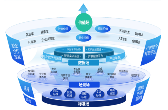 學(xué)院商數(shù)專業(yè)群將“共生”理念融入職教實踐,提出“四象場域共生”育人模型,構(gòu)建“標準場—場景場—數(shù)據(jù)場—價值場”四維聯(lián)動機制: