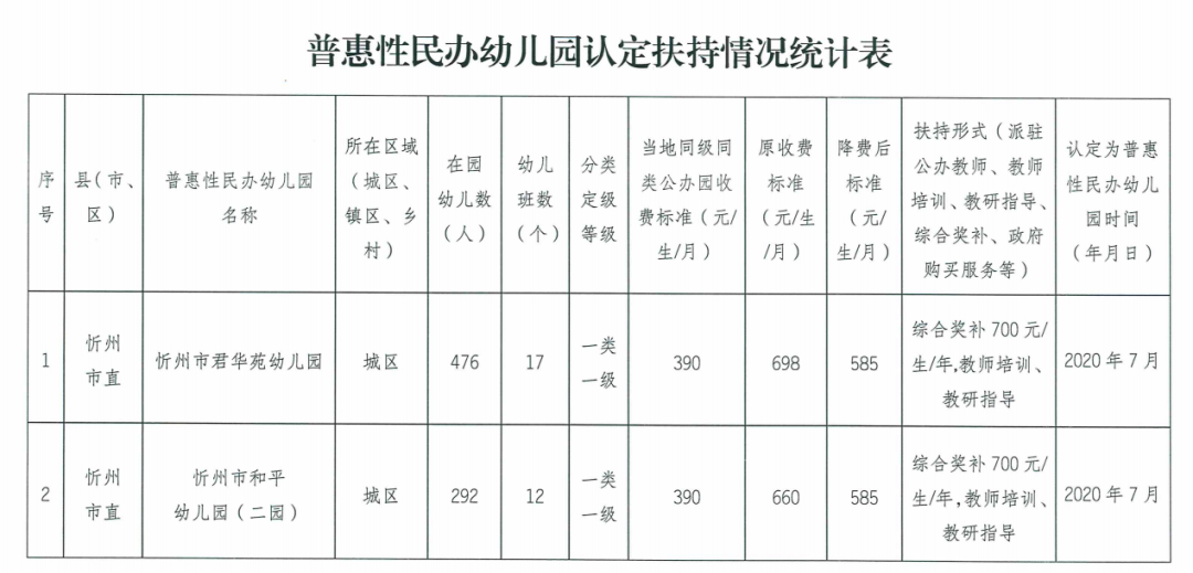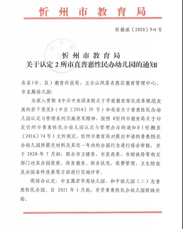忻州市教育局關(guān)于認(rèn)定2所市直普惠性民辦幼兒園的通知
