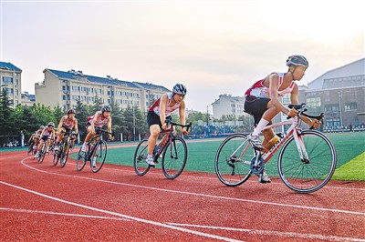 圖為8月10日,在山東省青州市旗城教育集團的操場上,學生們開展自行車訓練。王繼林攝(人民視覺)