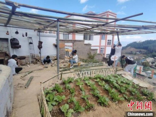 圖為龍?zhí)吨行膶W(xué)校學(xué)生們自己動(dòng)手,修建蔬菜種植園。龍?zhí)吨行膶W(xué)校 供圖