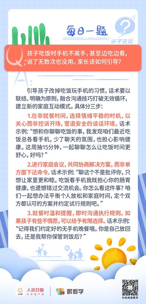 | 每日一題丨孩子吃飯玩手機屢教不改,該如何引導? |