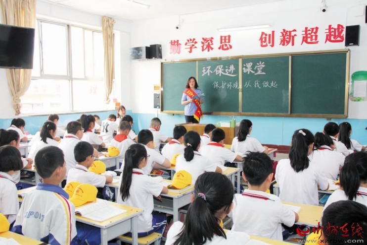 五臺縣實驗小學以“勤學深思、創(chuàng)新超越”為教學方向,定期邀請忻州市生態(tài)環(huán)境局五臺分局的干部,登上講臺向學生講解《中華人民共和國環(huán)境保護法》和《日常環(huán)保知識解答》,潛移默化地增強學生的環(huán)保意識,深受學生喜歡。圖為學生上環(huán)保課。金俊賢 攝