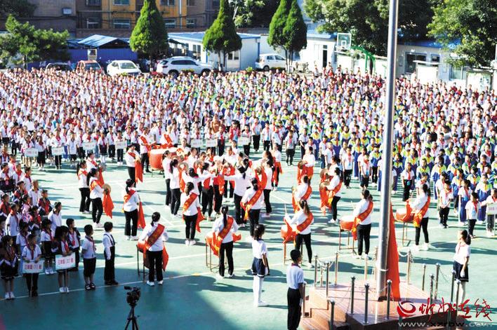 “老師,您辛苦了!”活動現(xiàn)場,少先隊員為前來上課的老師們以及馬路邊維持交通秩序的交警叔叔、護學(xué)崗志愿者鞠躬敬禮并戴上鮮艷的紅領(lǐng)巾,表達了同學(xué)們對老師、對長輩最誠摯的敬意?!爸x謝孩子們,這是我們應(yīng)該做的。祝同學(xué)們健康成長!”老師、叔叔阿姨回以鼓勵的話語。大會對學(xué)校師德標(biāo)兵、模范教師、優(yōu)秀班主任、先進工作者進行了表彰。