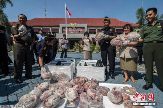 資料圖:當?shù)貢r間2015年7月8日,印尼泗水,印尼海關官員查獲一批1.3噸將被運往新加坡的冷凍穿山甲并焚燒銷毀。