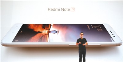 今年3月3日,在印度首都新德里,小米科技推出專門針對(duì)印度市場的紅米Note 3手機(jī)。圖為小米科技全球副總裁雨果·巴拉在發(fā)布會(huì)上介紹紅米Note 3手機(jī)。