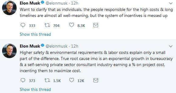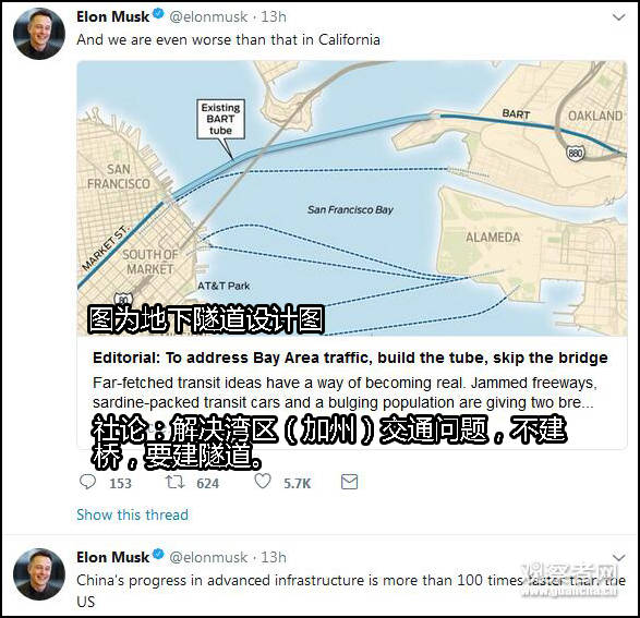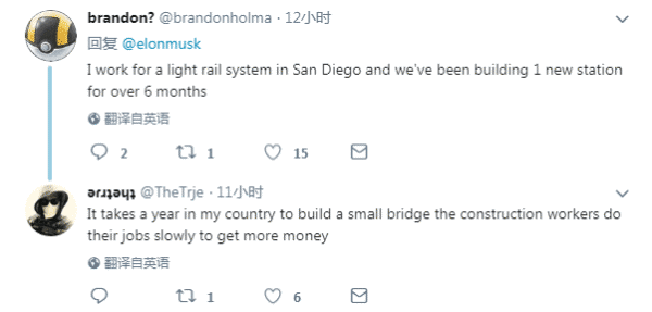 馬斯克還對(duì)美國(guó)的基建行業(yè)現(xiàn)狀做出了自己的看法。他表示,安全、環(huán)保、人力只是一小部分因素,官僚體系和以利益最大化為目標(biāo)的私企們,才是造成美國(guó)基建落后的“罪魁禍?zhǔn)住薄?/p>