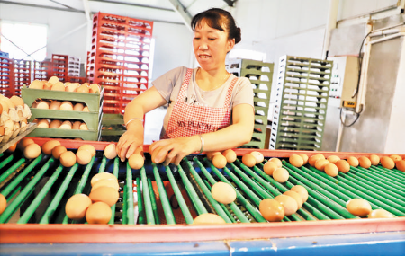 原平農(nóng)商行積極開(kāi)展“三大四掃五進(jìn)”活動(dòng),讓普惠金融的觸角向鄉(xiāng)村不斷延伸,精準(zhǔn)對(duì)接縣域種養(yǎng)大戶,支持種養(yǎng)業(yè)發(fā)展。今年,該行為原平市興崞養(yǎng)殖專(zhuān)業(yè)合作社提供400萬(wàn)元信貸資金,解決了企業(yè)流動(dòng)資金不足的問(wèn)題。圖為專(zhuān)業(yè)合作社的工人在車(chē)間分撿雞蛋。趙 鴻 攝