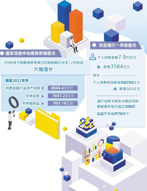 一季度以來(lái),我國(guó)消費(fèi)復(fù)蘇按下“快進(jìn)鍵”,消費(fèi)信貸投放和惠民力度相較去年不斷加大。農(nóng)業(yè)銀行今年一季報(bào)顯示,擴(kuò)投資促消費(fèi)力度持續(xù)加大。在促消費(fèi)方面,個(gè)人貸款余額7.9萬(wàn)億元,新增3584億元。其中,個(gè)人消費(fèi)類貸款余額8793億元,新增383億元。此外,郵儲(chǔ)銀行在今年5月份開(kāi)展“讓美好發(fā)生”活動(dòng),推出個(gè)人額度類消費(fèi)貸款系列產(chǎn)品“郵享貸”,首次通過(guò)郵儲(chǔ)銀行APP完成“郵享貸”首筆支用1萬(wàn)元以上的用戶,有機(jī)會(huì)獲得美團(tuán)外賣代金券等禮品。