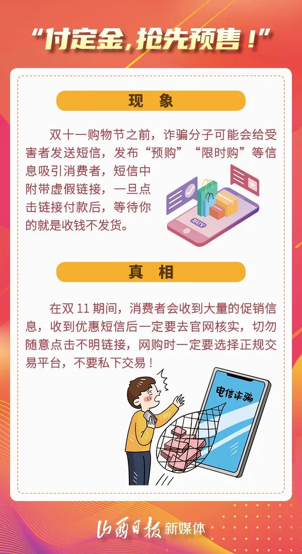 隨著一年一度的“雙十一”電商購物節(jié)臨近,各大電商平臺也都開始開啟不同形式的促銷預(yù)熱活動,與此同時,不法分子也在伺機(jī)而動,為了避免大家落入騙局,下面為大家盤點(diǎn)近期出現(xiàn)的新型詐騙套路,戳穿騙子的真面目,守護(hù)好你的錢袋子。