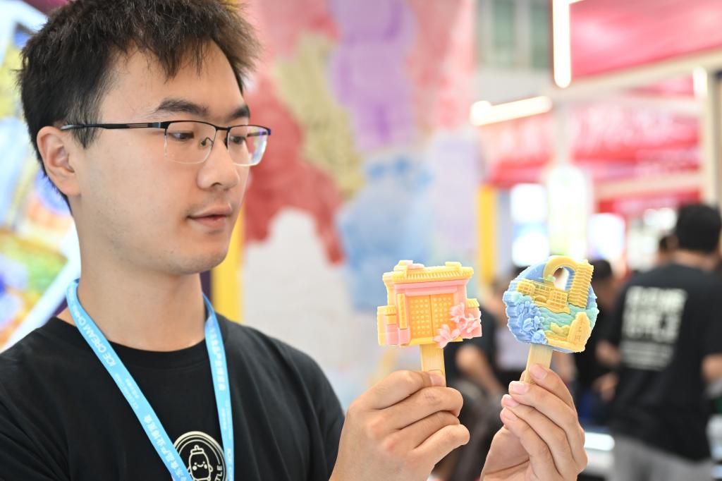 9月26日,參展商在博覽會(huì)現(xiàn)場(chǎng)展示兩款高校主題文創(chuàng)冰淇淋。新華社記者 孫凡越 攝 “除了減少糖分和卡路里外,一些冰淇淋品牌還開始添加具有健康益處的成分,如益生菌、膳食纖維等。這些成分不僅提升了冰淇淋的營(yíng)養(yǎng)價(jià)值,還賦予了產(chǎn)品更多的健康賣點(diǎn)?!睆埿『胝f。 光明乳業(yè)是中國領(lǐng)先的乳制品生產(chǎn)商之一,近期上海益民食品一廠有限公司推出了輕乳系列產(chǎn)品。 “這些產(chǎn)品減少了50%的蔗糖,有些還添加了膳食纖維,小杯設(shè)計(jì)也便于消費(fèi)者控制熱量?!痹诠饷魅闃I(yè)展臺(tái)上的張敏懿介紹道。 中國的德氏集團(tuán)有多款產(chǎn)品出口至美國、加拿大、新西蘭等國家和地區(qū)?!拔覀?cè)诋a(chǎn)品的原料添加和外觀設(shè)計(jì)方面,始終秉持著天然與健康的原則。在走向海外市場(chǎng)時(shí),我們不斷和海外合作商溝通交流,一起探索冰淇淋產(chǎn)品創(chuàng)新和健康升級(jí)新的可能性?!痹摷瘓F(tuán)營(yíng)銷總監(jiān)孟杰說。