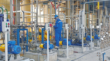 制造“綠色”,更要“綠色”制造。在廠區(qū)內(nèi),循環(huán)水站、凈水廠、污水站等廢棄物處理區(qū)早已拔地而起,進入試運行環(huán)節(jié)?!皬S區(qū)所產(chǎn)生的廢氣經(jīng)過DFTO處理達標排放,廢固由資質(zhì)單位集中回收處理,污水經(jīng)過凈水處理、回用水裝置回收循環(huán)利用,可實現(xiàn)零排放。另外,還充分回收利用了開發(fā)區(qū)內(nèi)的新石能源公司產(chǎn)生的焦爐氣作為燃料,讓綠色環(huán)保貫穿產(chǎn)品始終。”項目工程師張宏偉介紹道。