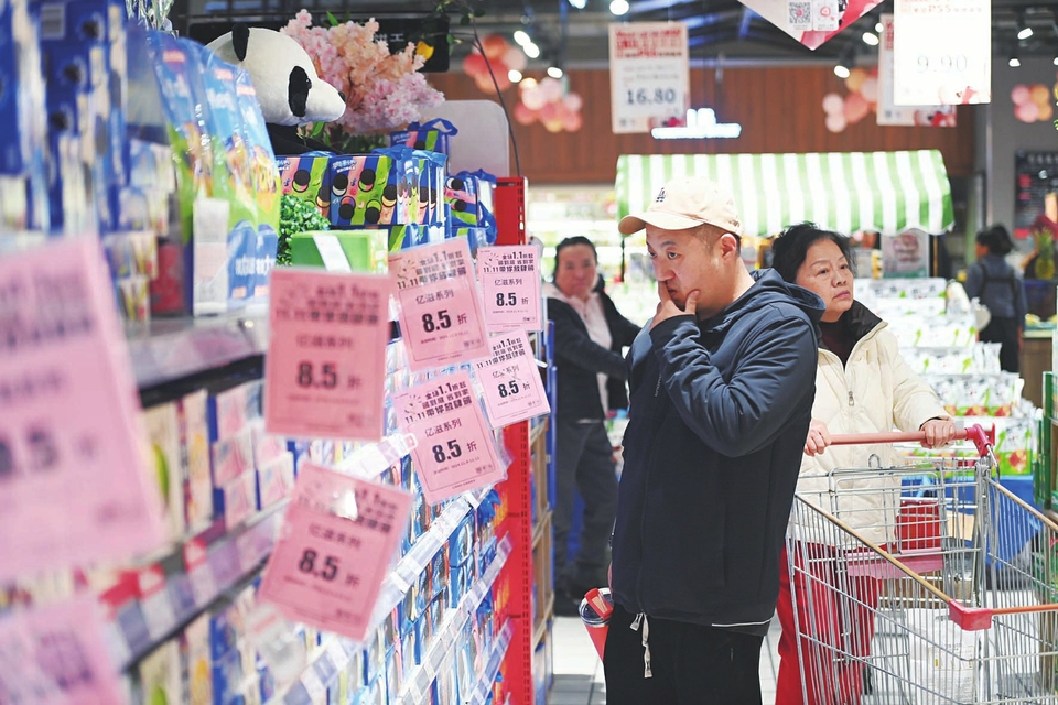 十一月十一日,太原市濱河路一家超市內(nèi),市民正在選購(gòu)貨品?!半p十一”當(dāng)日,省城各大商超、購(gòu)物中心優(yōu)惠活動(dòng)多多,吸引了眾多消費(fèi)者線下選購(gòu)商品。
