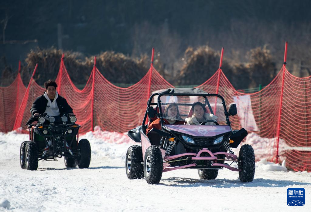 1月19日,在邯鄲市復(fù)興區(qū)東高河村滑雪場,游客在體驗雪地越野車項目。