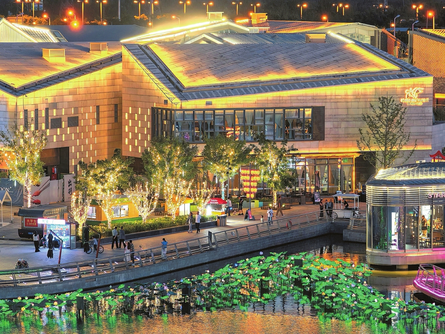 6月12日,太原晉陽湖畔,晉陽里商圈燈光璀璨、景致迷人。這里集餐飲、文化、購物等多元功能于一體,以時尚韻味與煙火氣息,點亮太原夜間經(jīng)濟,成為市民游客沉浸式體驗夜生活的熱門之選。