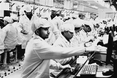 近年來,印度政府出臺政策鼓勵電子產(chǎn)品本地制造,vivo手機(jī)在毗鄰新德里的諾伊達(dá)地區(qū)建立了生產(chǎn)線。該工廠為當(dāng)?shù)靥峁┝?000個就業(yè)崗位,促進(jìn)了當(dāng)?shù)氐慕?jīng)濟(jì)發(fā)展。圖為工人們正在生產(chǎn)線上作業(yè)。記者 鄒 松攝