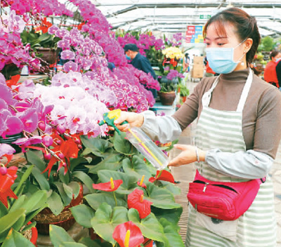 新疆烏魯木齊明珠花卉市場內(nèi)的商戶開門迎客。圖為市場一角。張秀科攝(人民視覺)