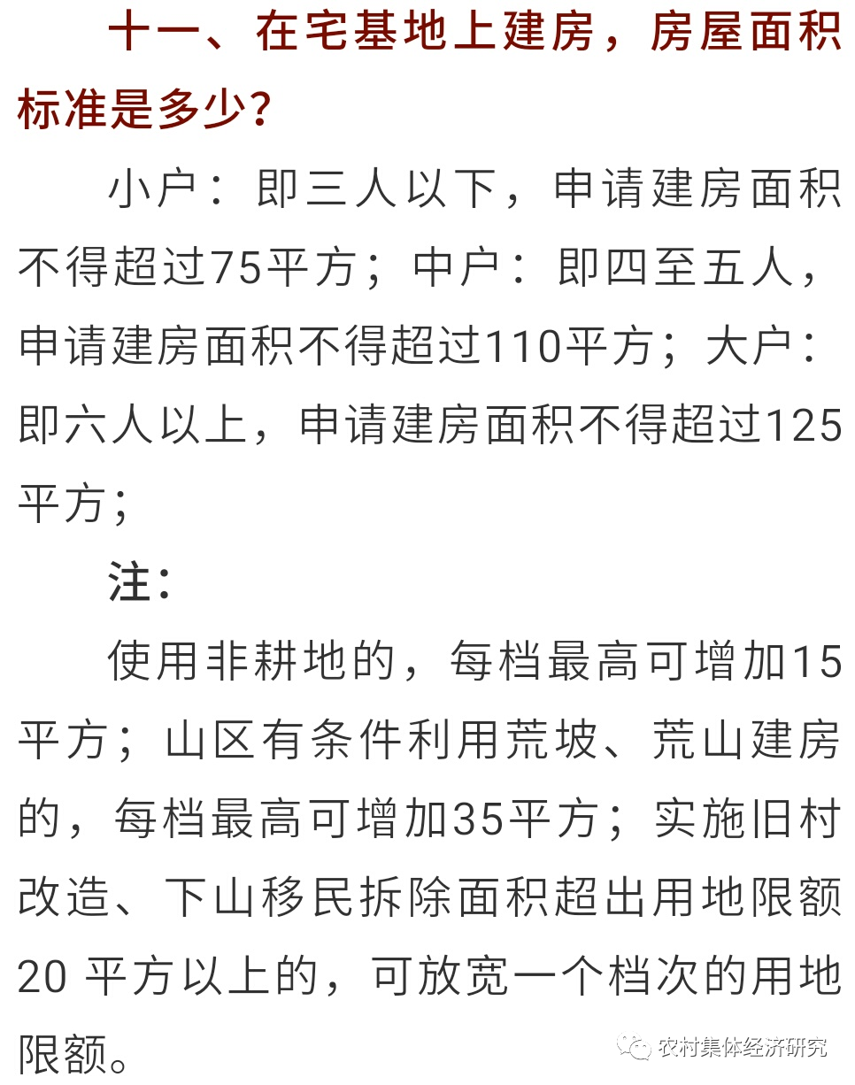 十、農(nóng)村宅基地面積標準是多少?根據(jù)《土地管理法》相關(guān)規(guī)定:農(nóng)村宅基地用地標準:占用農(nóng)用地每處不超過200平方米(0.30畝),占用建設用地和未利用地每處不超過233平方米(0.35畝)。同時《土地管理法》第62條規(guī)定:農(nóng)村村民宅基地面積不得超過省、自治區(qū)、直轄市規(guī)定的標準。也就是說農(nóng)村宅基地按照各個省、自治區(qū)或直轄市相關(guān)的規(guī)定,全國并沒有統(tǒng)一的計算方法,因為涉及到山區(qū)、平原、草原等地理形勢的因素,每個地區(qū)的政策不同。
