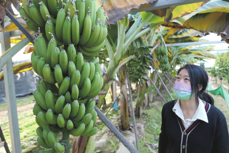 大棚內(nèi),成熟的香蕉掛滿枝頭,填補(bǔ)了北方無(wú)自產(chǎn)南方水果的空白。