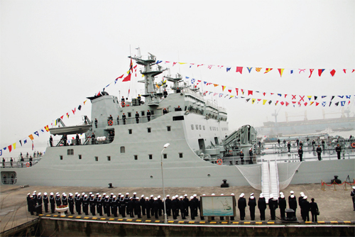 據(jù)悉,“五臺山艦”是我國自行研究設計的大型登陸艦,舷號為917,最大排水量5008噸,最大航速20節(jié)。該型登陸艦是我海軍近年來建造和裝備的新型登陸艦,性能設計更加貼近聯(lián)合登陸作戰(zhàn)的實戰(zhàn)需求。主要使命是登陸作戰(zhàn)及抗登陸作戰(zhàn)中實施輸送登陸兵渡海登陸和運送物資裝備任務。平時可執(zhí)行運輸補給、搶險救災、醫(yī)療救援等非戰(zhàn)爭軍事行動。(李忻生 郝江男)