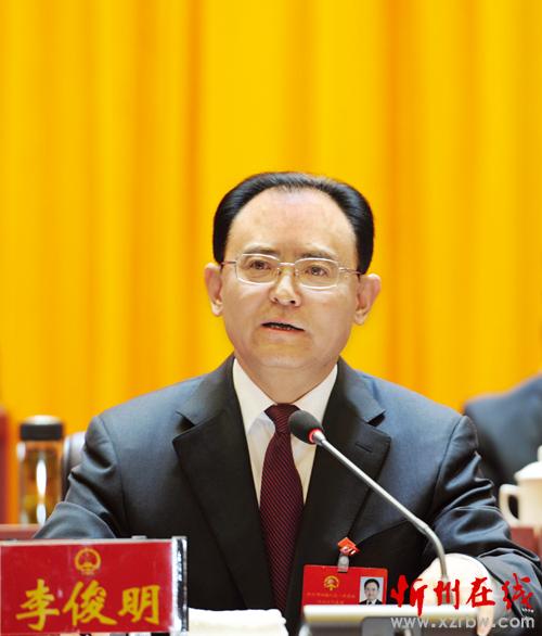 李俊明作重要講話 賈雪峰主持并講話 鄭連生張曉峰劉鋼柱王珍阮全進陳義青王建廷趙志堅范波濤崔建新王志東出席 大會表決通過了關于忻州市人民政府工作報告的決議等