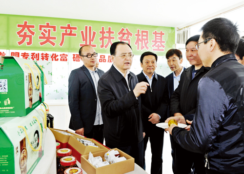 省人大常委會(huì)副主任、市委書記李俊明在神池縣小雜糧加工廠調(diào)研。劉紀(jì)森 攝 本報(bào)訊(記者 任逢春)4月11日到14日,省人大常委會(huì)副主任、市委書記李俊明先后深入到神池、五寨、河曲、保德四個(gè)今年脫貧摘帽縣,就春耕備耕、整村搬遷、移民安置、產(chǎn)業(yè)發(fā)展、“三基”建設(shè)、特色風(fēng)貌整治等走訪農(nóng)家、社區(qū)、企業(yè),看脫貧進(jìn)展,聽發(fā)展規(guī)劃,與市縣鄉(xiāng)村干部和貧困群眾面對(duì)面交流,進(jìn)一步梳理思路、尋找差距,鼓實(shí)勁、謀實(shí)招、求實(shí)效,共商精準(zhǔn)扶貧、有效脫貧、高質(zhì)量摘帽途徑。他強(qiáng)調(diào),要認(rèn)真學(xué)習(xí)習(xí)近平新時(shí)代中國(guó)特色社會(huì)主義思想,特別是習(xí)總書記關(guān)于扶貧開發(fā)和鄉(xiāng)村振興的重要論述,貫徹落實(shí)黨中央、國(guó)務(wù)院和省委、市委的決策部署,更加精準(zhǔn)聚焦,下足繡花功夫,因地制宜發(fā)展特色產(chǎn)業(yè),充分調(diào)動(dòng)干部群眾的內(nèi)生動(dòng)力,苦干實(shí)干確保高質(zhì)量脫貧、如期摘帽,為鄉(xiāng)村振興奠定基礎(chǔ)。 四月的晉西北田野上新綠簇簇,神池五寨寒涼山區(qū)耕機(jī)隆隆、人歡馬叫,河曲保德沿黃耕地畦正壟直亟待下種。發(fā)展產(chǎn)業(yè)是脫貧攻堅(jiān)的根本保證,是鄉(xiāng)村振興的關(guān)鍵所在,發(fā)展農(nóng)業(yè)產(chǎn)業(yè)要有特色。神池縣八角鎮(zhèn)圪坨莊的大棚中,鮮嫩的黃瓜、西紅杮分外引人。在詳細(xì)了解后,李俊明得知棚中作物生長(zhǎng)所施肥料竟是碎胡麻籽和胡麻油,是在土肥專家指導(dǎo)下嚴(yán)格按照無(wú)公害綠色標(biāo)準(zhǔn)進(jìn)行作務(wù)。他要求神池縣切實(shí)發(fā)揮好本地水土優(yōu)勢(shì),將有機(jī)旱作農(nóng)業(yè)與畜禽養(yǎng)殖廢棄物處置有效結(jié)合,推進(jìn)有機(jī)旱作農(nóng)業(yè)示范縣建設(shè)從無(wú)公害向綠色、有機(jī)穩(wěn)步推進(jìn)。五寨縣梁家坪鄉(xiāng)梁家坪村組建農(nóng)機(jī)專業(yè)合作社,折股量化優(yōu)惠貧困戶,種地投入傾斜貧困戶,在引導(dǎo)貧困群眾增收同時(shí)壯大村集體經(jīng)濟(jì)規(guī)模。李俊明對(duì)五寨縣立足耕地平坦連片優(yōu)勢(shì),從推進(jìn)農(nóng)機(jī)扶貧和發(fā)展有機(jī)旱作的“兩機(jī)”著力,推進(jìn)農(nóng)業(yè)產(chǎn)業(yè)發(fā)展表示肯定,鼓勵(lì)不斷壯大規(guī)模,真正形成產(chǎn)業(yè)。 忻州是中國(guó)雜糧之都,晉西北更是雜糧王國(guó)。李俊明實(shí)地了解河曲縣前川鄉(xiāng)駐村工作隊(duì)開發(fā)的綠豆、黑豆、黃芥油等各類雜糧商品,察看五寨縣匯豐公司過(guò)億斤規(guī)模化雜糧生產(chǎn)體系,了解“神池印象”等整合胡麻油、毛尖茶、月餅等本土特色商品進(jìn)行線上銷售的收入情況,仔細(xì)測(cè)算種植富硒小米等新型雜糧為種植戶帶來(lái)的增收效果。他說(shuō),我們的雜糧都是好東西,但仍然停留在粗加工階段,要對(duì)標(biāo)市場(chǎng)需求,突出“有機(jī)”優(yōu)勢(shì),在深加工、精加工上做文章,順應(yīng)消費(fèi)時(shí)尚,找準(zhǔn)銷售方向,走小包裝功能食品路線,加大線上銷售覆蓋面,在用好公司+合作社+農(nóng)戶模式的同時(shí),穩(wěn)定建立貧困戶與雜糧生產(chǎn)銷售的利益聯(lián)結(jié)機(jī)制。 畜牧養(yǎng)殖是農(nóng)民的傳統(tǒng)經(jīng)營(yíng)項(xiàng)目,規(guī)模化經(jīng)營(yíng)在帶動(dòng)貧困戶減貧增收上效益明顯。河曲縣前川鄉(xiāng)南墕村在集中養(yǎng)驢的同時(shí),帶動(dòng)周邊發(fā)展秸稈飼料加工。神池晉神五和畜牧公司,利用自有科研技術(shù)推廣耐粗飼、抗寒性好的杜湖雜交一代新種羊,引導(dǎo)貧困戶以戶為基發(fā)展羊產(chǎn)業(yè),深受群眾認(rèn)同。李俊明實(shí)地了解后,對(duì)創(chuàng)新模式發(fā)展傳統(tǒng)羊產(chǎn)業(yè)表示肯定,希望積極探索總結(jié)出可復(fù)制可推廣的經(jīng)驗(yàn)。河曲巡鎮(zhèn)月平養(yǎng)殖公司是土生土長(zhǎng)起來(lái)的本地養(yǎng)殖企業(yè),二期場(chǎng)區(qū)投用后年出欄生豬將達(dá)到2萬(wàn)頭。李俊明實(shí)地察看了解,與負(fù)責(zé)人分析同集團(tuán)化養(yǎng)殖公司的優(yōu)劣勢(shì),希望放寬眼界,從提升養(yǎng)殖的標(biāo)準(zhǔn)化程度入手,增強(qiáng)應(yīng)對(duì)市場(chǎng)波動(dòng)能力,提高市場(chǎng)競(jìng)爭(zhēng)能力,切實(shí)盡好企業(yè)的社會(huì)責(zé)任,帶動(dòng)貧困戶脫貧增收。 長(zhǎng)期一燒了之的作物秸稈如今成了香餑餑。正在建設(shè)的神池淵林生物質(zhì)熱電聯(lián)產(chǎn)項(xiàng)目,以秸稈為主要燃料進(jìn)行供熱。在機(jī)耕率達(dá)到85%的五寨縣,億牧源公司通過(guò)生產(chǎn)秸稈飼料、生物質(zhì)燃料等方式綜合利用作物秸稈,同時(shí)大面積收儲(chǔ)秸稈又為當(dāng)?shù)剞r(nóng)機(jī)合作社帶來(lái)收益。專業(yè)從事農(nóng)作物秸稈、畜禽糞便生產(chǎn)生物有機(jī)肥的保德縣鑫土地農(nóng)林科技公司,一期項(xiàng)目已進(jìn)入邊建設(shè)邊投產(chǎn)階段。李俊明非??隙▽⒐I(yè)化理念應(yīng)用到農(nóng)業(yè)產(chǎn)業(yè)上的發(fā)展思路。他說(shuō),有機(jī)旱作農(nóng)業(yè)
