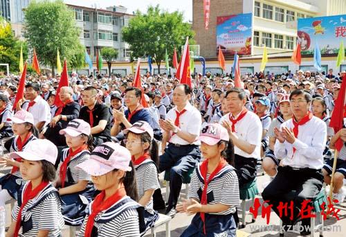 6月1日上午,李俊明來到忻州市七一路小學。寓教歌舞書畫,寄情德智體美,七一路小學先后被評為“全國語言文字規(guī)范化示范?!?、“ 國家級規(guī)范漢字書寫教育特色學?!薄ⅰ皣壹壵Z言教改實驗?!?、“國家級美術教育先進學?!?。李俊明仔細察看學生書法作品,翻閱教師教案和學生作業(yè),了解學科教學創(chuàng)新舉措。響應學校號召,李俊明在“手接手心連心,共創(chuàng)文明城市”倡議書上簽名助陣,與小學生們一起將心愿卡貼上心愿樹,同參加慶?;顒拥膶W生家長們親切交談,了解孩子們的學習情況。學校以“ 新時代,新夢想,新召喚”為主題慶?!傲弧保羁∶飨瞪霞t領巾,與小朋友們一起觀看文藝展演節(jié)目。