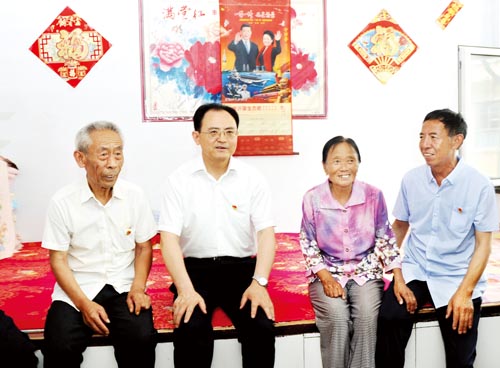 圖為省人大常委會副主任、市委書記李俊明在忻府區(qū)解原鄉(xiāng)大莊村慰問困難老黨員馬補(bǔ)田。(本報(bào)記者 劉紀(jì)森 攝)