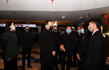 省人大常委會(huì)副主任、市委書(shū)記李俊明在開(kāi)萊橫店影城檢查娛樂(lè)場(chǎng)所暫停營(yíng)業(yè)執(zhí)行情況 本報(bào)記者 劉紀(jì)森 攝