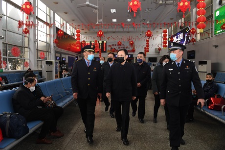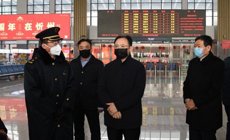 省人大常委會(huì)副主任、市委書(shū)記李俊明在火車站檢查督導(dǎo)疫情防控措施準(zhǔn)備情況 本報(bào)記者 劉紀(jì)森 攝